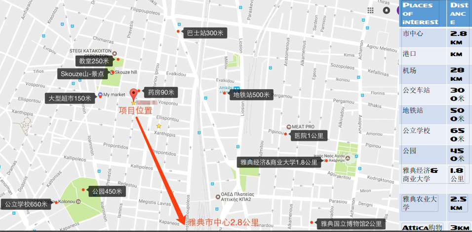 雅典市区稀缺大型小区项目,投资自住两相宜下楼即是Skouze山公园,咖啡馆、超市、购物中心、学校、地铁站都在步行10分钟范围内