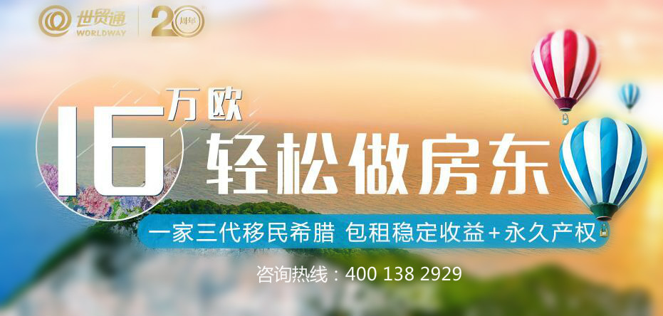 现在是希腊移民政策相对宽松的时机,也是办理周期较短、较快的时期,更是投资房产的较佳时机。世贸通推出的海岛房产,包租5年,每年7%的收益,即投资者5年可收回35%的利润,相当于只投资16万欧元,即可一家三代移民希腊。
