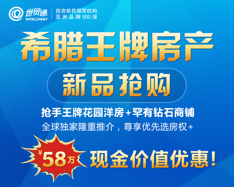 希腊投资移民,申请门槛低,审批快速,仅需购买价值25万欧元的房产,即可全家一步到位快速拿希腊永居身份,尊享欧盟公民优厚福利待遇,世贸通希腊投资移民更曾创下申请一天就获批的业内记录。