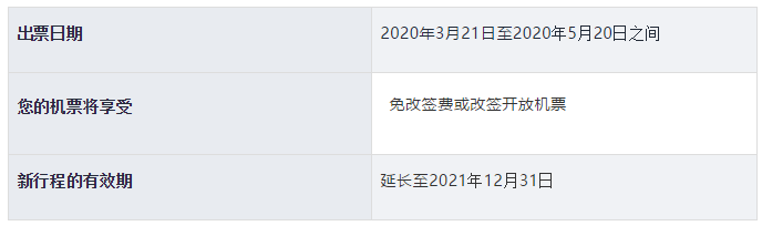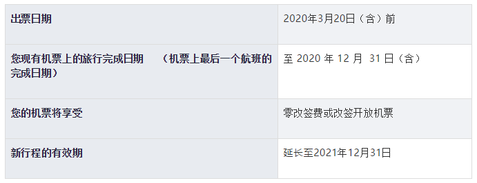 如果您在2020年3月21日至2020年5月20日之间购买的国际、国内段机票,延长至2021年12月31日之前使用,或您可以将您的机票改为开放机票。