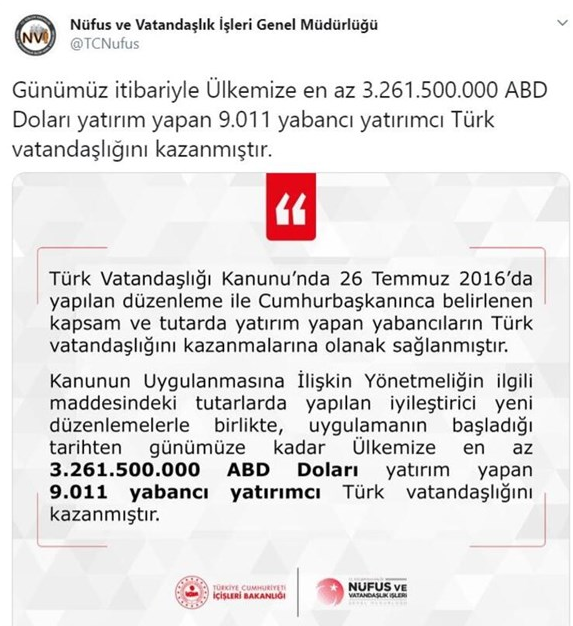 信息来源:土耳其人口与公民事务总局官方Twitter