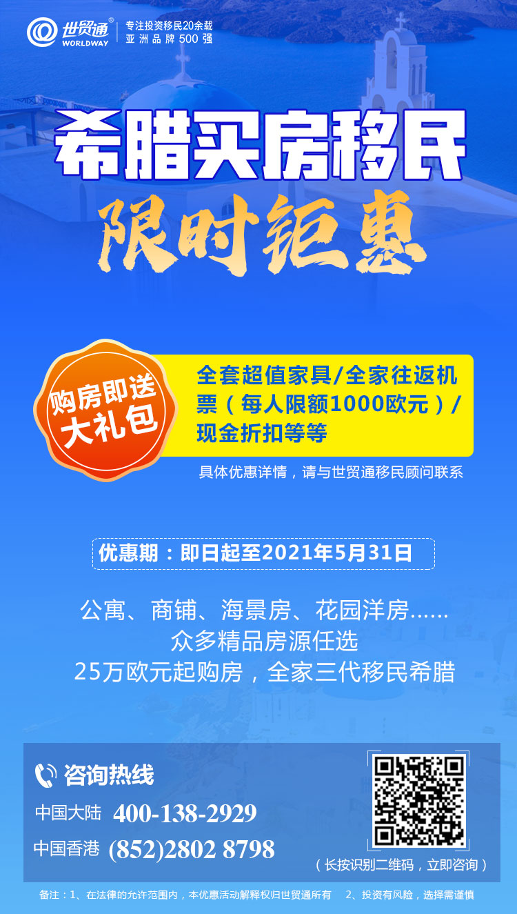 ◆ 25万欧元起购房,可全家三代申请获希腊永居